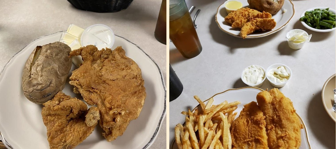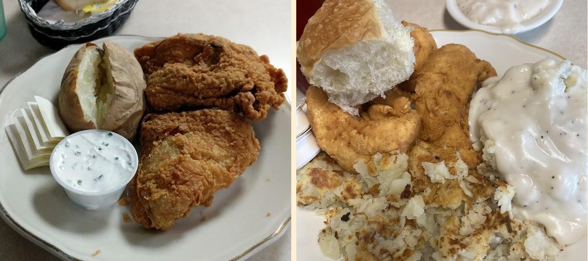 The famous home-style chicken is a must-try. Diners also rave about the ribeye steaks and fresh salads. Don't forget to sample the homemade desserts, like cheesecake or ice cream, for a sweet ending.